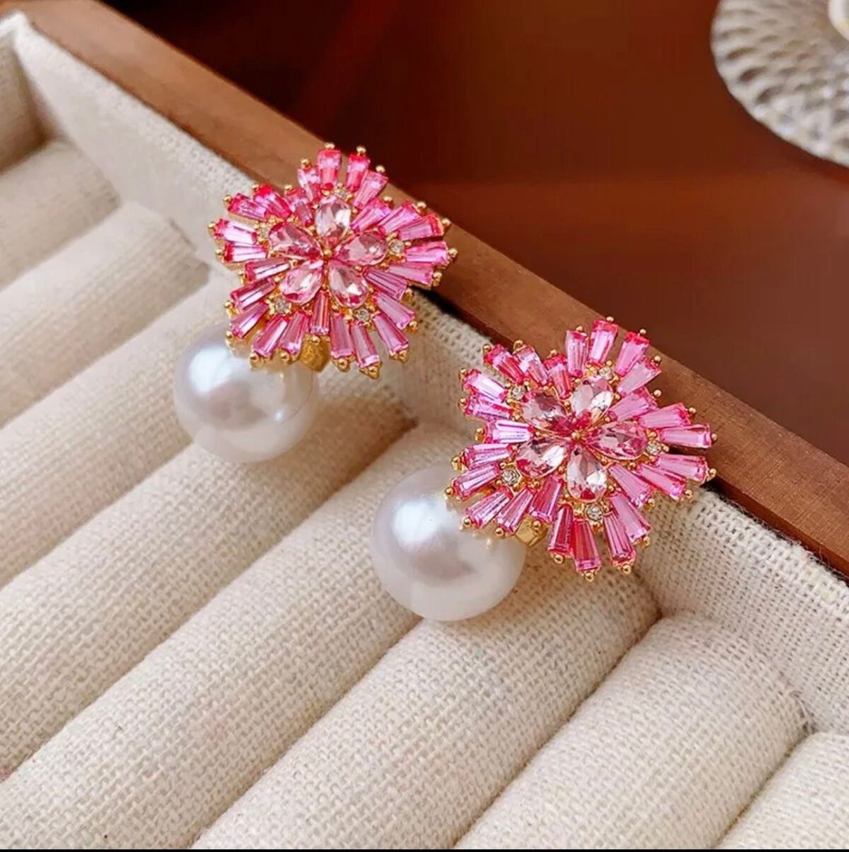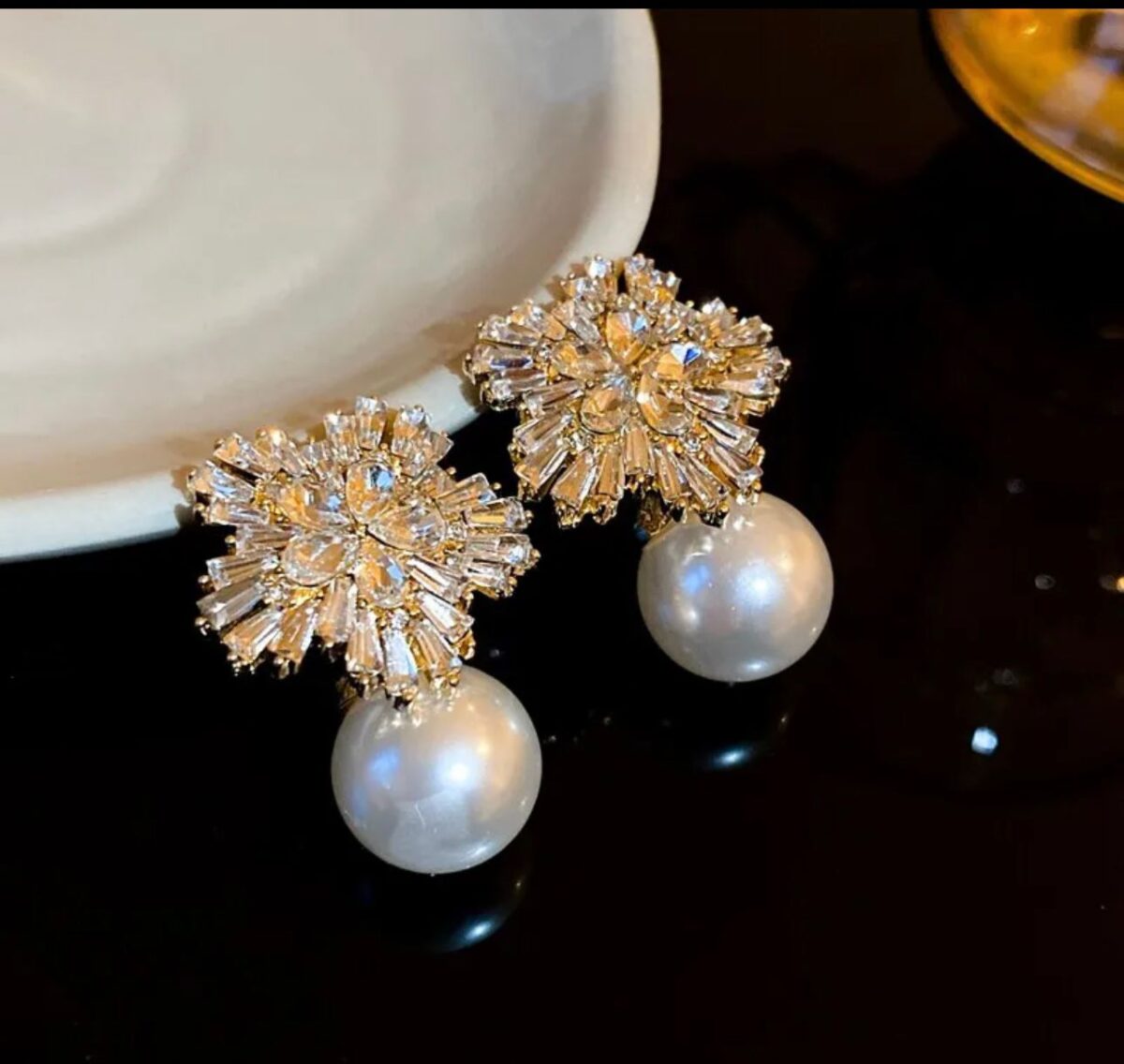 Light Luxury Imitation Pearl Earrings Women Fashion Zircon Crystal Earrings Snowflake Stud Earrings Jewelry For Party Wedding