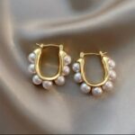 Stylish U-shaped Hoop Earrings Gold Color Elegant Imitation Pearl Earrings Wedding Party Girls Luxury Accessories Women’s Gifts